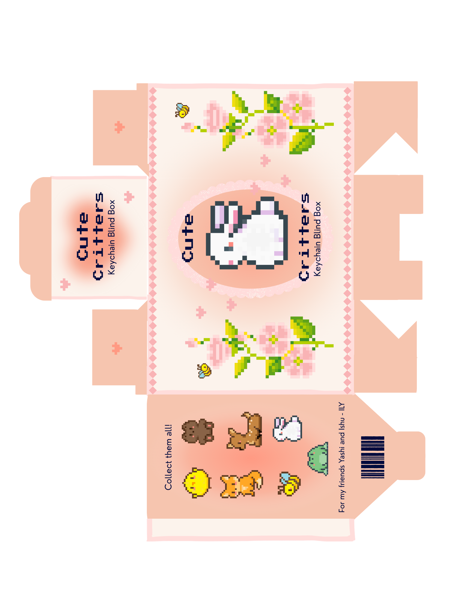 I designed this blind box pattern for a personal project. I drew all of the pixel animals and added them to the design.