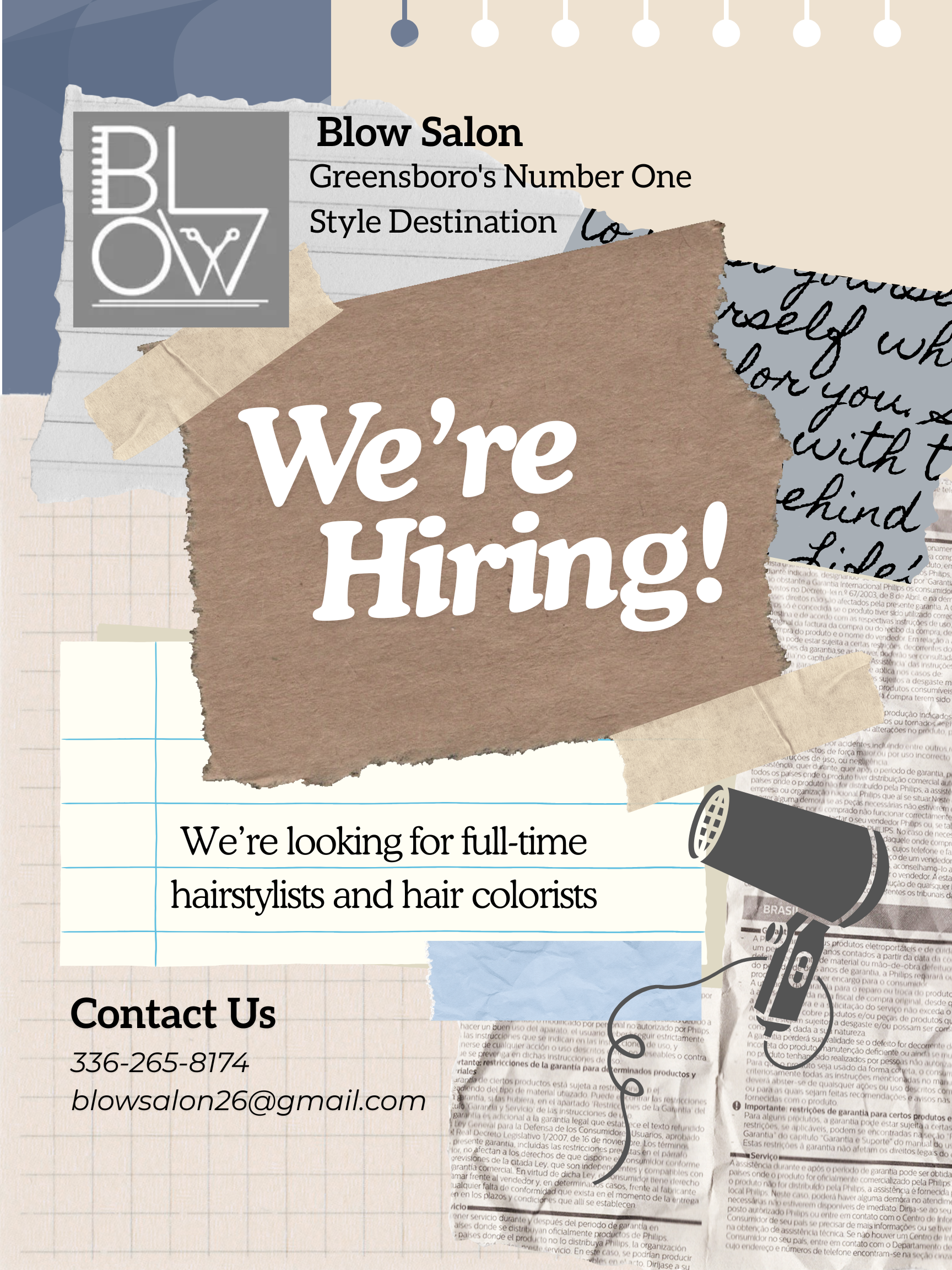 I designed this poster for BLOW Salon to advertise thier opening positions.